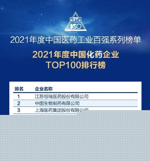 此前,金年会金字招牌诚信至上医药已经连续多年入选“中国化药企业TOP100排行榜”,自2018年起名列首位,今年再度蝉联榜首。