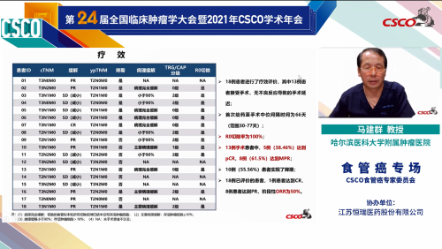 CSCO学术年会口头汇报丨马建群教授:卡瑞利珠单抗联合紫杉醇和奈达铂新辅助治疗局部晚期食管鳞癌的单臂、II期探索性研究