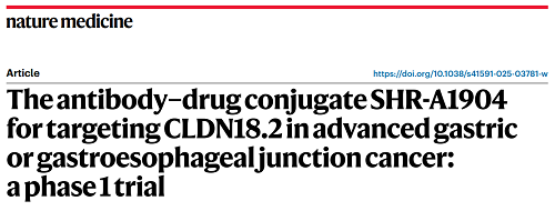 金年会金字招牌诚信至上医药CLDN18.2 ADC创新药SHR-A1904治疗胃癌临床研究结果荣登Nature Medicine